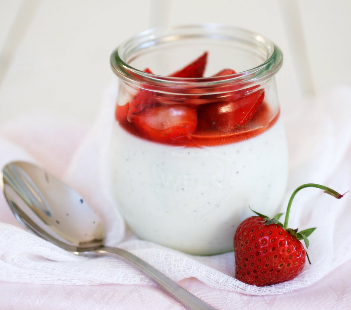 Ez a forró nyári napokra ajánlott desszert mind közül a legegyszerűbben elkészíthető, nem is kell hozzá más, mint eper, natúr joghurt és cukor vagy édesítőszer.
