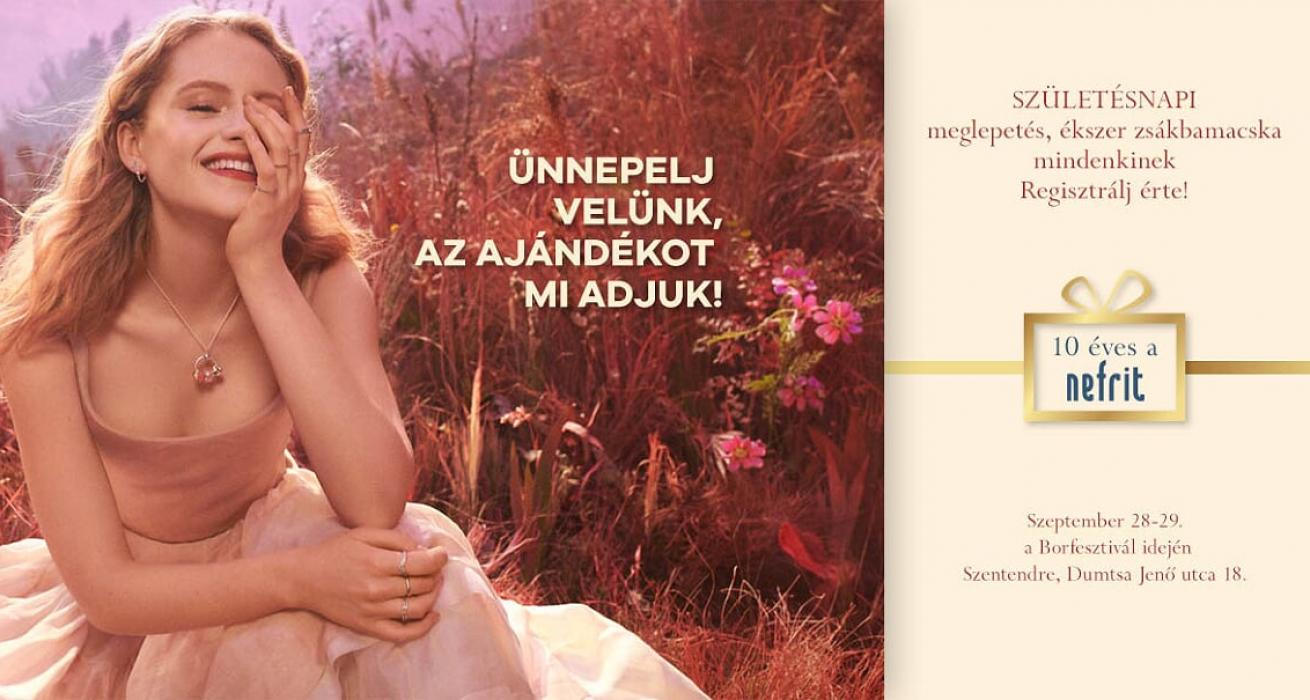A Nefrit Óra- Ékszer üzlet születésnapja, illetve a Szentendrei Borfesztivál tökéletes apropója lehet, hogy a kellemes őszi hétvégén kicsit kimozduljunk a fővárosból. Szeptember 28-29-én a születésnap alkalmából az üzlet egy kis ajándékkal kedveskedik mindenkinek, aki kíváncsi a legstílusosabb és legtrendibb ékszerekre, amelyek könnyen megtalálhatjuk kedvenc őszi kiegészítőinket is.